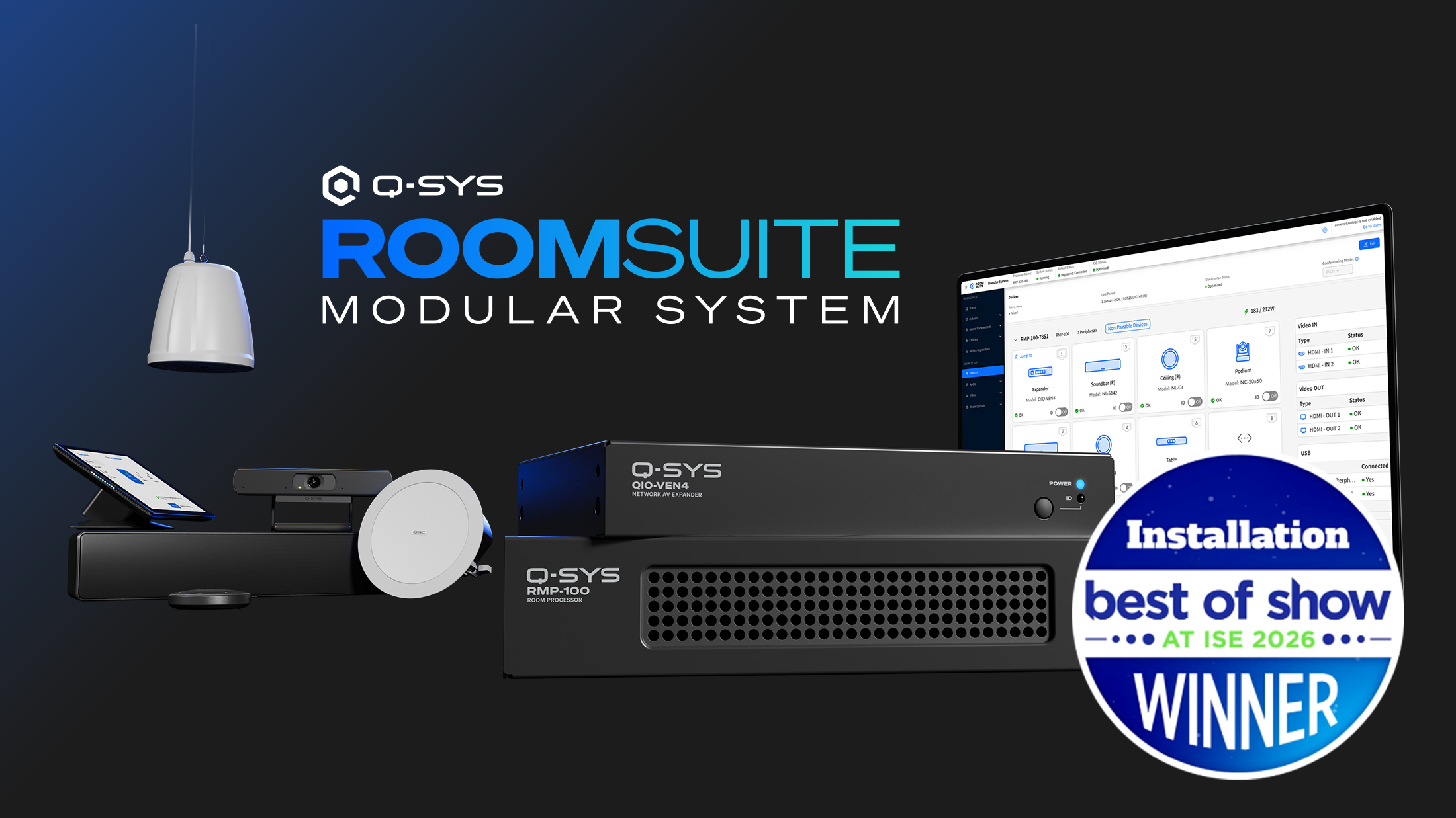 This Best of Show at ISE 2026 award winner is the new hardware/software paradigm for collaboration systems, purpose-built for rapid, standardized deployment of medium-to-extra-large spaces at scale. Includes the new RPM-100 processor, QIO-VEN4 expander and a simple web-based configuration and deployment app.